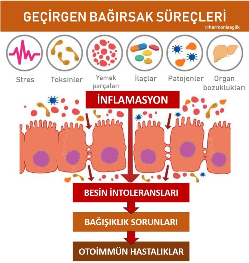 Bu inflamatuar süreç, bağırsaktaki sıkı bağlantıları kırar. Sağlıksız bağırsak geçirgen hale gelir ve boşluklar daha büyür, yani bazı zararlı davetsiz misafirler artık zardan geçebilir.